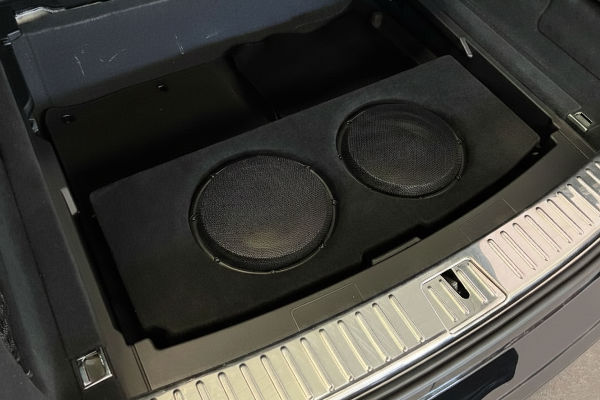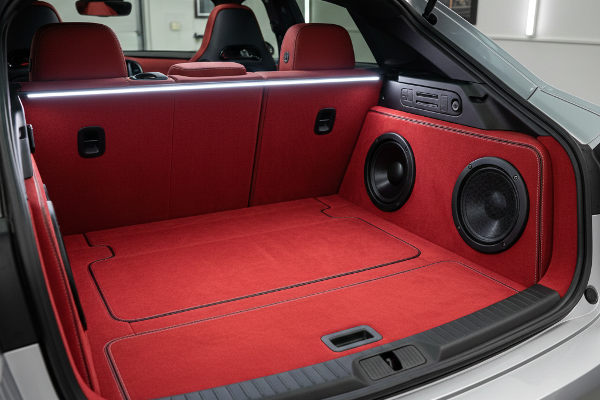 Passgenaue Subwoofer- und Ausbaulösungen, die sich in das gesamte Konzept nahtlos einfügen und mit dem Originalteppich oder wahlweise auch mit Alcantara veredelt und überzogen werden.